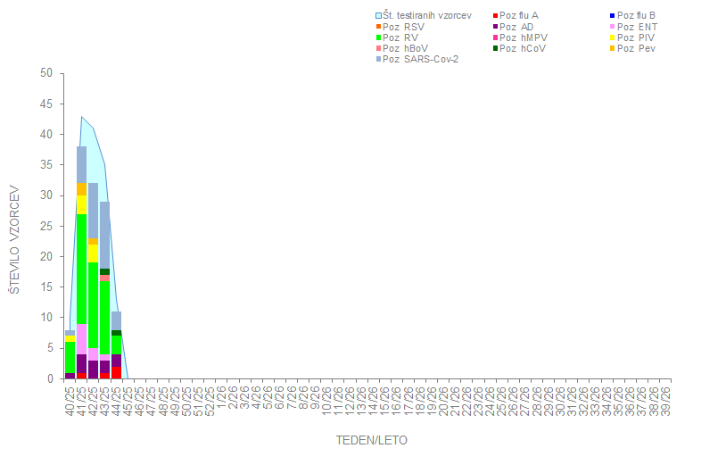 Okužb z RSV v tednu 44/2025 laboratorijsko nismo potrdili.