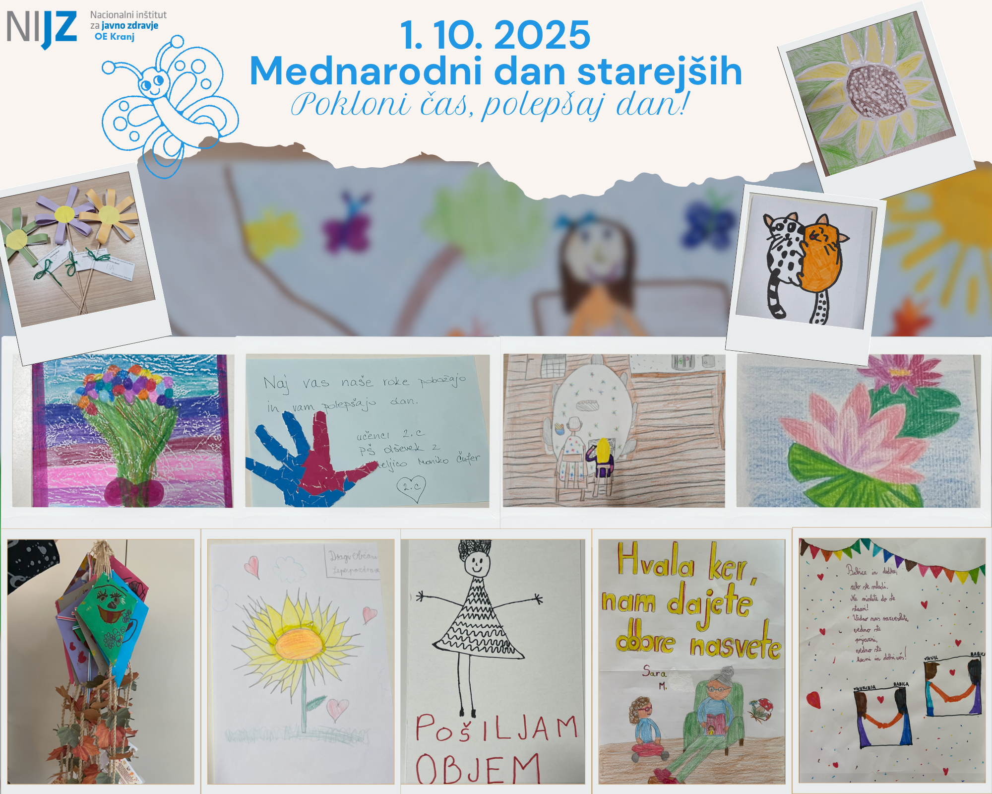 je del vseslovenske akcije, ki je letos k poudarkom preteklih obeležitev dodala temo starizma, ki se pojavlja v obliki stereotipov, predsodkov in diskriminacije ter pomembno krajša življenja. Otroci iz gorenjskih vrtcev in šol so ustvarjali izdelke oziroma napisali sporočila za starejše. Prejeli smo jih več kot 600. Te bodo patronažne medicinske sestre v tednu ob mednarodnem dnevu starejših odnesle ob patronažnem obisku starejšim.