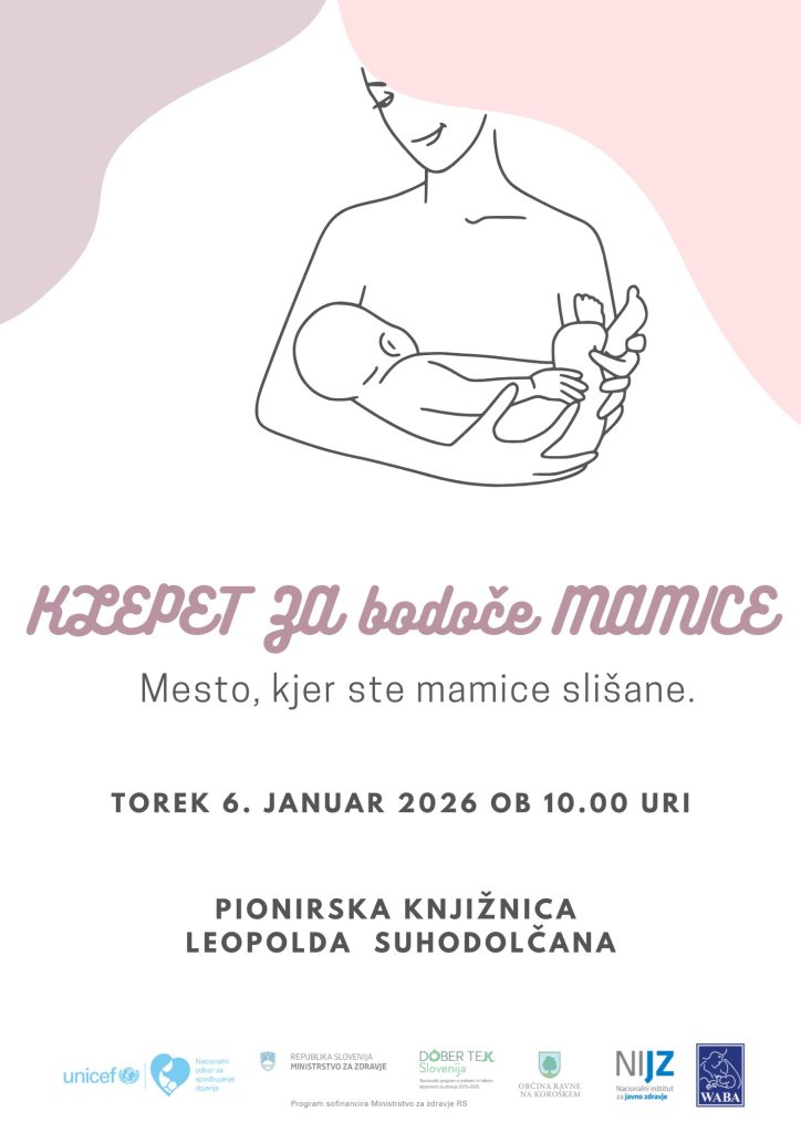 Klepeti za mamice potekajo vsak prvi torek v mesecu ob 10. uri v prostorih Pionirske knjižnice Leopolda Suhodolčana na Ravnah. Druženja ponujajo priložnost za pogovor, izmenjavo izkušenj in podporo v obdobju nosečnosti in materinstva. Na vsakem srečanju je prisotna tudi IBCLC svetovalka za dojenje. Podporna skupina je namenjena nosečnicam, doječim materam in mladim družinam.