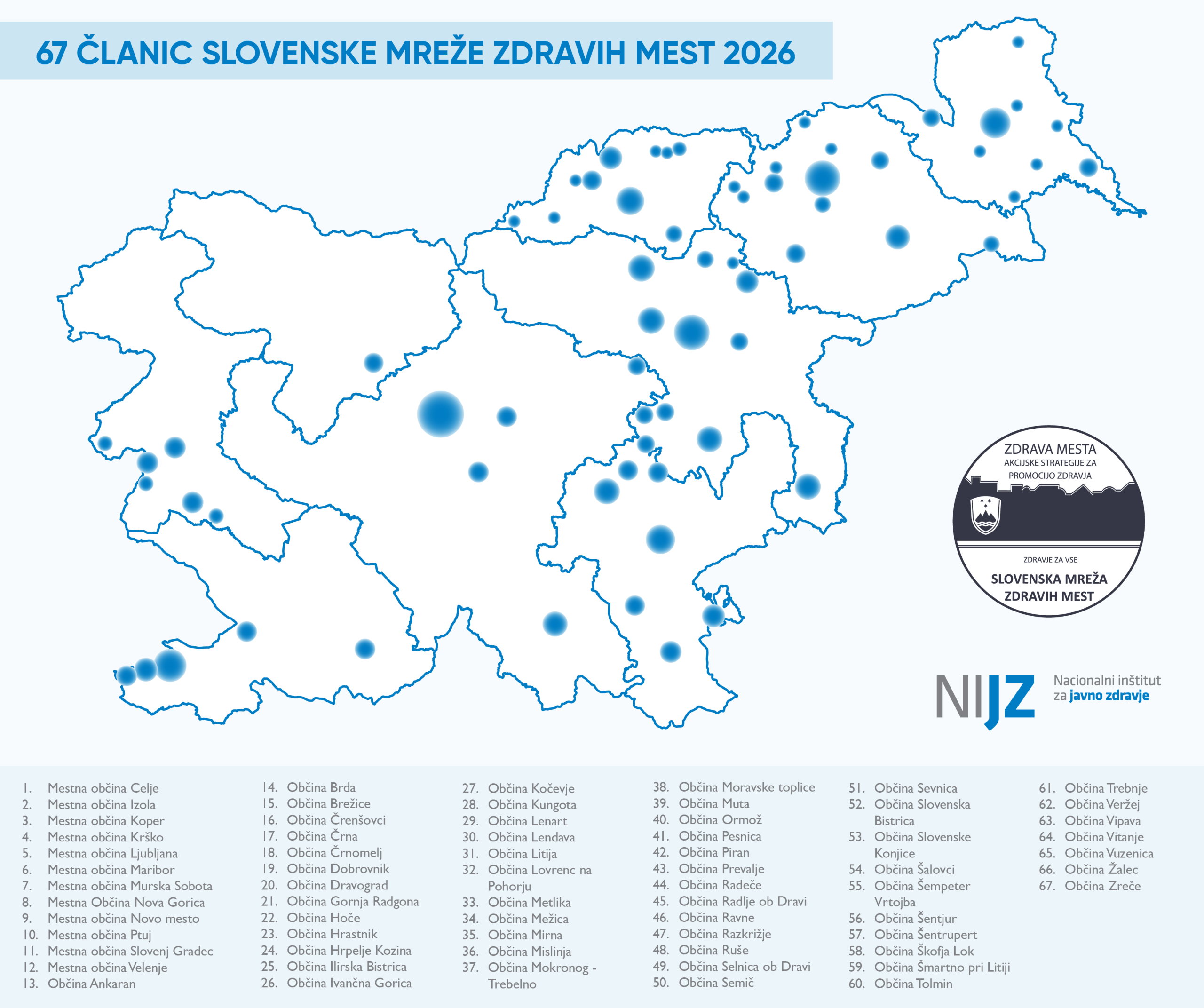 Namen programa: Vsako mesto oziroma občina naj vodi zdravo javno politiko, kar se kaže v večji skrbi za zdravje, v izboljšanju zdravstvenega stanja prebivalcev, v varovanju mestnega okolja, predvsem pa v upoštevanju predlogov prebivalcev za boljše življenje v mestu.