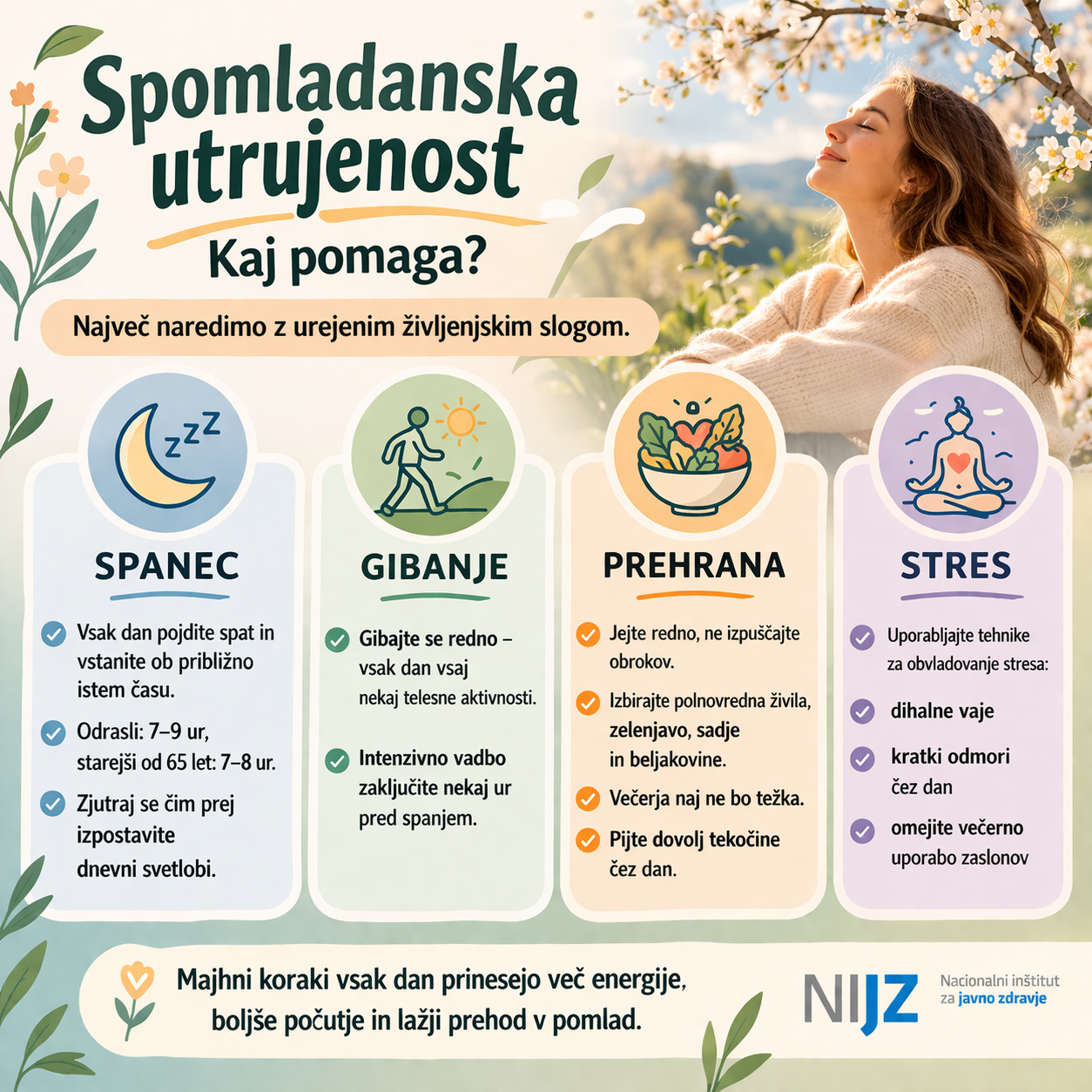 - Spanec – Vsak dan pojdite spat in vstanite ob približno istem času. Odrasli naj spijo 7 do 9 ur, starejši od 65 let 7 do 8 ur. Zjutraj se čim prej izpostavite dnevni svetlobi.